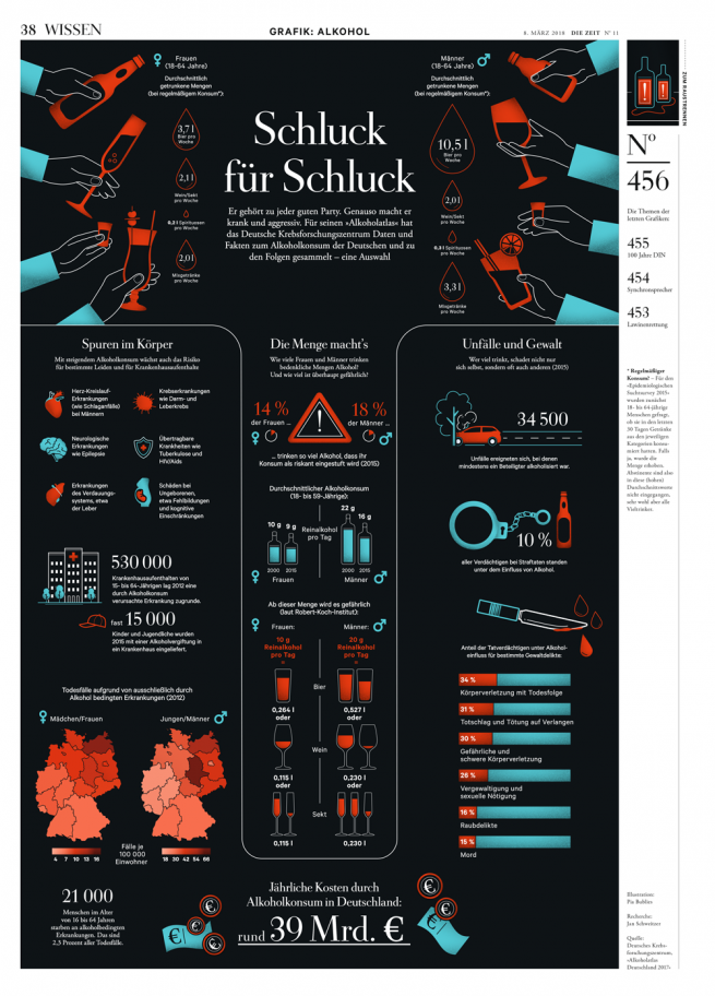 Infografikseite für DIE ZEIT zum Thema Alkoho