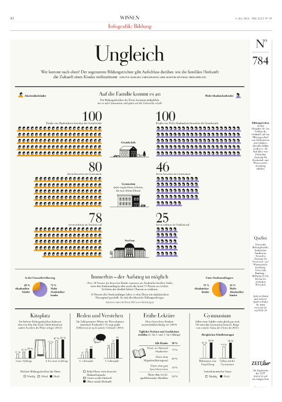 Infografikseite für DIE ZEIT zum Thema Bildungstrichter