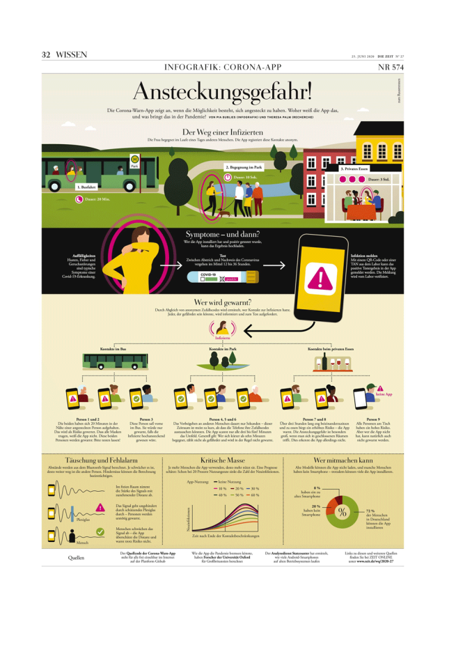 Infografikseite für DIE ZEIT zum Thema Corona-App