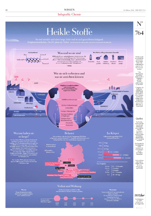 Infografikseite für DIE ZEIT zum Thema Ewigkeitschemikalien