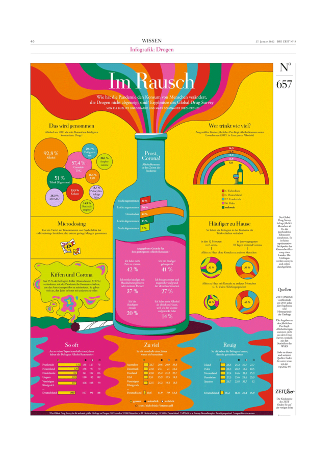 Infografikseite für DIE ZEIT zum Thema Drogenkonsum