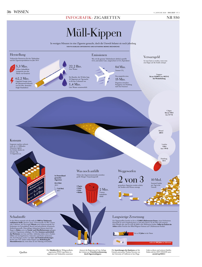 Infografikseite für DIE ZEIT zum Thema Zigaretten